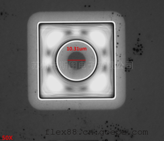 国内前三半导体电光器件、模块及系统的研发,销售和产业化公司,VCSEL无损穿透案例:垂直腔面发射激光器(Vertical-Cavity Surface-Emitting Laser,简称VCSEL,又译垂直共振腔面射型激光)是一种半导体,其激光垂直于顶面射出,与一般用切开的独立芯片制程,激光由边缘射出的边射型激光有所不同。常规的金相显微镜无法观测VECSEL产品,以下为近红外显微镜MIR100拍摄的图片